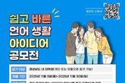 경남일간신문 | 경상국립대학교(GNU·총장 권진회) 국어문화원(원장 정영훈 국어국문학과 교수)은 ‘경남 우리말 가꿈이 활동 지원 사업’의 일환으로 ‘쉽고 바른 언어생활 아이디어 공모전’을 개최한다. ‘경남 우리말 가꿈이 활동 지원 사업’은 우리말과 우리글을 바르게 사용하도록 알리는 언어문화 개선 운동으로, 경상국립대학교 국어문화원에서는 10년째 이 사업을 이어 오고 있다. 이번 공모전은, 경상남도 내 대학생을 대상으로 올바른 언어문화 확산에 기여할 수 있는 실용적·창의적인 아이디어를 발굴하고자 마련했다. 공모 주제는 ▲쉽고 바른 공공언어 사용 확산 방안 ▲공공기관 언어 개선 방안 ▲세대 간 원활한 소통을 위한 방안 등으로, 일상과 공공 영역에서 누구나 이해하기 쉬운 언어환경을 조성할 다양한 제안을 제출하면 된다. 제출 기간은 11월 3일부터 30일까지이다. 참가 희망자는 공모 주제에 맞는 아이디어 제안서를 작성해 전자우편(ckc@gnu.ac.kr)으로 제출하면 된다. 자세한 내용은 경상국립대학교 국어문화원 누리집에서 확인할 수 있다. 선정 결과는 12월 12일에 국어문화원 누리집에서 발표한다. 으뜸상 1명(또는