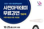경남일간신문 | 사천시는 사천방문의 해를 맞아 10월 25일 토요일 오후 3시 사천시립도서관에서 ‘2025년 사천아카데미 제5강’ 강좌를 개최한다. 이번 강좌는 정문정 작가를 초빙하여 ‘말하기와 글쓰기 둘다 잘하는 방법’이라는 주제로 진행되며, 말하기와 글쓰기에 대한 명쾌한 비법을 소개할 예정이다. 정문정 작가는 '무례한 사람에게 웃으며 대처하는 법', '다정하지만 만만하지 않습니다' 등의 베스트셀러를 집필한 작가로, 유튜브 채널 ‘정문정답’을 통해 대중과 활발하게 소통하고 있다. 참여 희망자는 10월 18일 토요일 오전 10시부터 사천시립도서관 홈페이지에서 예매(1인 2매, 선착순 마감)해야 수강이 가능하다. 수강료는 무료이다. 자세한 내용은 사천시평생학습센터 평생학습팀또는 도서관관리팀으로 문의하면 된다.