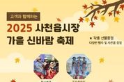 경남일간신문 | 사천시는 오는 16일 사천읍시장 공영주차장(특설무대)에서 ‘제15회 사천읍시장 가을 신바람 축제’를 개최한다고 14일 밝혔다. 사천읍시장 상인회 주최로 개최되는 이번 축제는 사천읍시장을 대내외적으로 홍보하는 것은 물론 상인과 고객이 한자리에 모여 축제를 즐기고 소통하기 위해 마련됐다. 이날 행사는 오후 6시 개막식을 시작으로 고고장구(문아카데미)의 역동적인 공연과 함께 황혜림, 채수빈, 김유화, 빅맨싱어즈(팝페라), 오드리걸즈 등 초청 가수들의 신나는 공연이 펼쳐진다. 또한, 사천읍시장의 대표 먹거리인 국수를 소재로 한 국수 빨리 먹기 대회, 장터 노래자랑 등 시민이 직접 참여할 수 있는 다양한 체험행사도 마련된다. 사천시는 이번 축제를 통해 전통시장 이용 활성화와 지역 상권의 재도약을 기대하고 있다. 박승배 회장은 “많은 시민과 관광객들이 축제에 오셔서 마음껏 즐기다 가시고, 특히 올해 주차 환경 개선사업으로 주차장이 확장되어 시장 이용이 더욱 편리해졌으니, 사천읍시장을 많이 찾아주셨으면 한다”고 말했다.