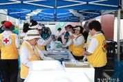 경남일간신문 | 의령군 적십자봉사회는 22일 대의면사무소에서 수해로 인해 대피 중인 이재민들을 대상으로 점심 식사를 제공하는 봉사활동을 펼쳤다고 밝혔다. 이날 점심은 집중호우로 피해를 보고 임시 대피 중인 대의면 이재민과 자원봉사 300여 명에게 제공되었다. 적십자봉사회원은 무더운 날씨 속에서도 정성껏 콩나물냉국과 소불고기 등 점심 메뉴를 준비해 따뜻한 마음을 전했다. 한편 이날 행사에는 박완수 도지사와 오태완 군수가 현장을 직접 찾아 이재민들을 위로하고 적십사 봉사회 관계자들을 격려했다.
