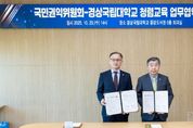 경남일간신문 | 경상국립대학교와 국민권익위원회는 10월 29일 오후 2시 가좌캠퍼스 도서관 6층 회의실에서 청렴한 미래인재 양성 및 청렴문화 확산을 위해 업무협약을 체결했다. 업무협약 체결식에는 권진회 총장을 비롯해 대학 보직자와 유철환 위원장과 부패방지국장, 대변인, 고충민원심의관, 청렴연수원장 등 10여 명이 참석했다. 행사는 참석자 소개, 각 기관 홍보영상 시청, 인사 말씀, 업무협약 내용 소개, 업무협약 서명 및 교환, 기념 촬영의 순으로 진행됐다. 이번 협약은 대학 내 청렴 가치관 확립과 관련 교육의 체계적 실현을 목표로 하며, 지속 가능한 청렴 교육을 통해 대학생들을 청렴 리더로 양성하는 데 중점을 둔다. 주요 협력 사항으로는 ▲대학생 청렴 가치관 확립을 위한 교육 ▲교직원의 청렴 역량 향상 교육 ▲대학생과 교직원의 고충 상담 및 해소를 위한 협력이 포함된다. 경상국립대학교 권진회 총장은 “청렴은 대학의 사회적 신뢰를 지탱하는 핵심 가치”라며 “우리 대학 학생들이 배움 속에서 청렴을 체득하고, 이를 사회로 확산시키는 청렴인재로 성장하도록 적극 노력하겠다.”라고 말했다. &nb