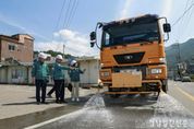 경남일간신문 | 산청군은 폭염으로 뜨겁게 달궈진 도로의 온도를 낮추기 위해 살수차를 운영하고 있다고 4일 밝혔다. 지역 내 주요 도로를 대상으로 이뤄지는 이번 살수차 운영은 도로 안전사고와 온열질환 예방을 위한 선제 조치다. 특히 열섬현상 완화와 도로 지열 상승으로 인한 변형을 예방하기 위해 산청읍, 시천면, 단성면, 신안면 등 유동 인구가 많은 지역을 중점으로 실시한다. 살수는 기상 상황에 따라 탄력적으로 운영되며 낮 최고기온 시간대와 폭염특보 발효 시 집중적으로 이뤄진다. 앞서 지난 3일 이승화 군수는 살수차 운영 현장을 찾아 점검을 실시한 바 있다. 이승화 군수는 살수차 효과를 직접 눈으로 확인하며 군민들의 안전과 건강에 각별한 신경을 써 달라고 주문했다. 산청군은 이번 조치가 온도 저감 효과로 군민들이 보다 안전하고 쾌적한 여름을 보낼 것으로 기대하고 있다. 또 살수 작업 외에도 무더위 쉼터 운영, 취약계층 보호 등 폭염에 대응하기 위한 종합대책을 추진하고 있다. 이승화 군수는 “폭염이 지속될 때는 한낮 외출을 자제하고 충분한 수분 섭취와 휴