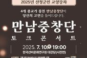 경남일간신문 | 산청군은 오는 10일 한국선비문화연구원 대강당에서 ‘만남중창단 토크콘서트’를 연다고 4일 밝혔다. 이번 행사는 산불 피해 일상 회복 지원을 위한 것으로 치유와 희망의 메시지를 전달 예정이다. 행사에서는 세계 최초로 4대 종교 성직자(천주교, 원불교, 불교, 개신교)들이 모여 결성한 만남중창단이 화합과 평화를 노래하고 감동을 전한다. 또 유쾌하면서도 진중한 대화로 관객과 소통할 계획이다. 산청군 관계자는 “이번 행사가 마음을 어루만지는 진정한 힐링의 시간이 되길 기대한다”며 “많은 관심과 참여로 서로에게 따뜻한 위로를 전해보길 바란다”고 말햇다.