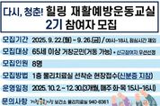 경남일간신문 | 거창군은 10월 2일부터 12월 30일까지 운영되는'다시, 청춘 힐링 재활예방운동교실 2기'참여자 8명을 오는 9월 22일부터 26일까지 5일간 모집한다. 해당 프로그램은 거동이 가능한 65세 이상 거창군민을 대상으로 근력 증진 및 일상생활 동작 훈련을 통해 장애를 예방하고 사회 참여를 확대하는 것을 목적으로 하며, 특히 참여 경험이 없는 신규대상자를 우선 선정해 더 많은 군민이 프로그램에 참여할 수 있도록 할 예정이다. 프로그램은 재활전담인력의 지도하에 보건소 물리치료실에 구비된 6종 기구를 활용해 소규모 맞춤형 그룹 운동을 진행한다. 운영 일정은 매주 화요일과 목요일 오후 3시부터 4시까지 주 2회로 진행되며, 신청 방법은 선착순 현장 접수로 신분증 지참 후 보건소 1층 물리치료실을 방문하면 된다. 이번 프로그램은 장애 발생 예방과 신체기능 회복은 물론, 자립적인 일상생활 수행 능력 향상을 도모함으로써 지역사회중심재활사업의 성과를 한층 확대할 것으로 기대된다. 이정헌 보건소장은 “이번 재활예방운동교실을 통해 군민 여러분이 스스로 건강을 지키고 활력을 되찾을 수 있기를 기대한다“며