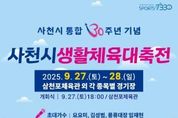 경남일간신문 | 사천시는 시 통합 30주년을 기념해 오는 9월 27일부터 28일까지 이틀간 삼천포체육관 및 시 전역의 종목별 경기장에서 ‘사천시생활체육대축전’을 개최한다고 23일 밝혔다. 이번 대축전은 사천시체육회 주최로 열리며, 태권도·축구·배구·탁구·게이트볼 등 21개 종목에서 생활체육 동호인들이 그동안 갈고닦은 기량을 펼친다. 개막식은 27일 오후 6시 삼천포체육관에서 2000여 명의 선수단과 시민들이 함께한 가운데 화려하게 펼쳐진다. 이날 ▲하이파이브 아이돌 커버댄스 공연 ▲이윤옥 명창 축하무대 ▲삼천포여자중학교 합창단의 애국가 제창 ▲삼천포고등학교 태권도 시범 등 풍성한 볼거리를 제공한다. 또한, 사천출신 가수 김성범과 트롯가수 요요미, 풍류대장 임재현, 프로 댄스스포츠 선수 장준영·김미연 등이 출연해 ‘통합 30주년 퍼포먼스’와 함께 시민 모두가 즐길 수 있는 축하의 장을 연출한다. 이틀째인 28일에는 사천시 전역에서 종목별 경기가 본격적으로 펼쳐진다. 사천체육관, 삼천포체육관, 사천볼링센터, 사천시유도회관, 우주항공테마축구장 등에서 치러지는 경기는 시민 누구나