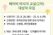 경남일간신문 | 거창군은 지난 26일부터 9월 4일까지 ‘베이비마사지교실(2차)’ 참여자를 모집한다고 밝혔다. 모집 대상은 관내 생후 3~12개월 아기와 부모 또는 조부모 10쌍이며, 선착순으로 접수받는다. 베이비마사지교실은 발달 단계에 적합한 마사지를 통해 아기의 건강한 성장을 돕고, 부모와 자녀 간의 친밀감을 높여 행복한 가정 형성에 기여하는 프로그램이다. 상반기에는 3회기를 운영했으며, 아기의 수면 패턴이 개선되고 부모의 육아 자신감이 향상되는 등 긍정적인 반응을 얻었다. 운영은 총 2회기로 진행되며, 회기별 5쌍이 참여한다. 수업은 매주 월·수요일 오후 3시부터 4시까지 진행된다. 1회기는 9월 8일부터 10월 1일까지, 2회기는 10월 13일부터 11월 5일까지 운영된다. 참여 신청은 보건소 방문을 통해 가능하며, 자세한 일정은 거창군 홈페이지에서 확인할 수 있다. 이정헌 보건소장은 “임신에서 출산, 양육까지 이어지는 전 과정에서 필요한 보건 서비스를 통해 건강하고 안전한 가정을 만들 수 있도록 최선을 다하겠다”라고 전했다. 기타 문의 사