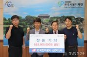 경남일간신문 | 진주시복지재단은 25일 바르게살기운동 경상남도협의회가 최근 집중호우로 피해를 입은 주민들의 생활 안정과 복구 지원을 위해 성금 550만 원을 기탁했다고 밝혔다. 이날 기탁식에는 김정기 회장을 비롯한 협의회 관계자들이 참석했으며, 전달된 성금은 진주시복지재단을 통해 집중호우 피해 주민들에게 지원될 예정이다. 김정기 회장은 “집중호우로 어려움을 겪고 있는 이웃들에게 조금이나마 도움이 되기를 바라는 마음으로 회원들과 뜻을 모았다”며 “앞으로도 지역사회에 희망을 나누고 더불어 사는 공동체를 만들기 위해 노력하겠다”고 전했다. 진주시 관계자는 “수해 복구에 힘쓰는 피해 주민들을 위해 귀한 정성을 기탁해 주신 바르게살기운동 경상남도협의회에 깊이 감사드린다”며 “전달된 성금은 피해 주민들의 생활 안정과 회복을 위해 소중히 사용하겠다”고 말했다. 한편, 바르게살기운동 경상남도협의회는 ‘진실·질서·화합’을 3대 이념으로 올바른 공동체 형성과 나눔 문화 확산을 위해 다양한 활동을 펼쳐오고 있으며, 재난 극복과 어려운 이웃돕기에도 적극 앞장서고 있다.