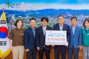 경남일간신문 | 합천군은 13일 군수실에서 경남 김해시에 소재한 수처리시설 및 밸브실 생산 전문업체 디케이금속의 이선동 대표가 고향사랑기부금 500만 원을 전달했다고 밝혔다. 이날 기탁식에는 디케이금속 상무 설일수, 협력업체 에이치산업 강현덕 대표가 참석해 기부의 뜻을 함께 나눴다. 2005년 창립한 디케이금속은 전국 상하수도 현장에 필요한 핵심 부품을 공급하며 국내 수처리 산업 발전에 기여해 왔으며, ‘물을 맑게, 환경을 푸르게’라는 기업 슬로건 아래 다양한 지역사회 지원 활동도 꾸준히 실천하고 있다. 이선동 대표는 “최근 합천군이 폭우 피해로 어려움을 겪고 있다는 소식을 듣고, 평소 공감해 온 고향사랑기부제 취지에 따라 참여하게 됐다”며 “기부금이 주민 복지와 생활환경 개선, 그리고 피해 복구에 보탬이 되길 바란다”고 말했다. 김윤철 군수는 “어려운 경제 여건 속에서도 변함없는 나눔을 실천해주신 데 대해 깊이 감사드린다”며 “기부금은 투명하게 사용해 군민 복지 증진과 생활환경 개선에 소중히 쓰겠다”고 밝혔다.