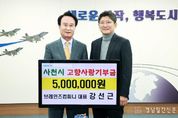 경남일간신문 | 사천시는 조경 시설물 제조·설치업체인 (주)금강휴랜드의 김택균 대표가 고향사랑기부금 500만 원을 기부하며, 사천 지역사회 발전에 뜻깊은 나눔을 실천했다고 28일 밝혔다. 김택균 대표의 아내는 사천시 동금동 출신으로, 김 대표는 “아내에게 특별한 의미가 있는 고향 사천의 발전에 보탬이 되고자 기부를 결심했다”고 말했다. 박동식 사천시장은 “가족을 향한 마음이 고향사랑기부로 이어진 것은 매우 뜻깊다”며 “기부금은 지역사회 발전을 위해 소중히 사용하겠다”고 전했다.