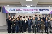 경남일간신문 | 김해시는 지난 2일 시청 대회의실에서 ‘2025년 주민참여예산제 성과보고회’를 개최했다고 밝혔다. 성과보고회는 올 한해 주민참여예산제 운영 전반을 돌아보고 향후 내실 있는 운영 기반을 마련하기 위해 ▲2025년 제도 운영 성과 보고 ▲모니터링 결과 보고 ▲2026년 운영 일정(안) 안내 등의 순서로 진행됐다. 2025년 주민참여예산제 주요 운영 성과는 ▲역량강화 교육 실시 및 홍보 동영상 제작 ▲주민참여예산 사업 심의 ▲찾아가는 주민참여예산제 컨설팅 실시 ▲자치법규 개정 등이다. 보고회에는 제4, 5기 위원 50여명이 참석했다. 올해 임기가 종료되는 4기 위원뿐만 아니라 내년 1월부터 임기가 시작되는 5기 위원들도 초청해 위원회의 지속가능한 운영을 도모했다. 시 관계자는 “한해를 돌아보고 내년을 준비하는 뜻깊은 시간이 됐다”라며 “4기 위원회 임기는 종료되지만, 내년에 새로 시작하는 5기 위원회와 함께 더욱 발전하는 김해시 주민참여예산제가 되도록 노력하겠다.”라고 밝혔다.