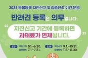 경남일간신문 | 거제시는 동물등록을 활성화하고 책임 있는 반려문화 조성을 위하여 오는 10월 31일까지 ‘동물등록 자진신고 기간’을 운영한다. 거제시 관내 모든 동물병원에서 등록이 가능하며, 자진신고 기간 중 신규등록 및 등록사항 변경 신고자에게는 과태료가 면제된다. '동물보호법'에 따르면 2개월령 이상 주택에서 반려 목적으로 기르는 개는 반드시 동물등록을 해야하며, 고양이는 등록 의무 대상은 아니지만 유실 방지를 위해 자발적 등록을 권장하고 있다. 또한 소유자 변경, 연락처 수정, 동물 사망 등 변경 사항은 정부24 또는 국가동물보호정보시스템을 통해 간편하게 신청할 수 있다. 자진신고 기간 종료 후인 11월 1일부터 30일까지는 집중단속이 진행되며, 미등록 시 100만 원 이하, 변경 신고 미이행 시 50만 원 이하의 과태료가 부과된다. 거제시 관계자는 “동물등록은 성숙한 반려문화 조성의 출발점”이라며 “반려동물 유실을 예방하고 책임 있는 반려문화가 정착될 수 있도록 아직 등록하지 않은 견주분께서는 가까운 동물병원을 방문해 꼭 등록해 주시길 바란다”고 전했다. 기타 자세한