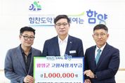 경남일간신문 | 함양군은 11일 오전 에이치엘에코텍(주) 영동소각장 김일영 운영소장과 신기배 함양라이온스 회장이 함양군청을 방문해 고향 발전을 위해 써달라며 고향사랑기부금 100만 원을 기부했다고 밝혔다. 김일영 소장은 “나고 자란 고향 함양을 늘 자랑스럽게 생각하며 타지에서도 항상 응원하고 있었다”라며, “작은 정성이지만 고향 발전에 조금이나마 이바지할 수 있게 되어 매우 기쁘다. 앞으로도 함양에 대한 애정과 관심을 이어가겠다”라고 기부 소감을 밝혔다. 이에 진병영 함양군수는 “고향을 잊지 않고 따뜻한 마음을 보내주신 김일영 소장님께 진심으로 감사드린다”라며 “소중한 기부금은 함양군 발전과 군민 복리 증진을 위해 꼭 필요한 곳에 사용하겠다. 이번 기부가 고향사랑기부제 활성화에 큰 힘이 될 것”이라고 화답했다. 한편, 함양읍 용평리 출신인 김일영 소장은 평소 고향 함양에 대한 깊은 애정을 간직해 온 것으로 알려있으며, 현재 거주 중인 영동군에서도 비비에스(BBS) 사무국장, 로타리클럽 회원, 지역사회보장협의체 총무 등 활발한 사회활동을 통해 지역사회 발전에 기여하고 있다.