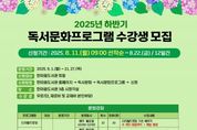 경남일간신문 | 거창군 한마음도서관은 오는 11일부터 초등학생과 성인을 대상으로 하반기 독서문화 프로그램 수강생을 모집한다. 이번 프로그램은 9월 1일부터 11월 27일까지 운영되며 군민들의 교육 및 문화생활 증진을 위한 다양한 프로그램이 운영될 예정이다. 먼저 초등학생의 상상력과 창의력을 키워 주는 ▲어린이 웹툰창작소, 역사에 대한 흥미를 유발하는 ▲어린이 역사탐험대 등 2개 강좌가 운영된다. 성인을 위한 강좌로는 취미생활과 인문학적 소양을 넓힐 수 있는 ▲디지털드로잉 ▲DIY 코바늘 ▲아뜰리에 자수 ▲보타니컬아트 ▲주역 ▲낭송의 품격 등 총 6개 강좌가 운영된다. 수강 신청은 한마음도서관 홈페이지에서 가능하며, 수강료는 무료이나 재료비는 본인 부담이다. 프로그램 문의는 한마음도서관 홈페이지를 통해 확인하거나 도서관담당으로 문의하면 된다.