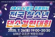 경남일간신문 | ‘2025년 보물섬 푸른파도 전국 청소년 댄스 경연대회’ 본선 경연이 오는 7월 26일 오후 7시 미조면 북항에서 펼쳐진다. 남해군은 지난 6월 한 달간 대회 참가자 모집을 진행했으며, 전국 각지의 재능 있는 청소년 댄스팀 27팀이 예선에 접수했다. 7월 9일 동영상 예선 심사를 통과한 10팀이 본선 진출의 영광을 안았다. 본선 무대에 오를 팀은 △남해 HYPE △김해 디스펙트럼 △천안 쌍둥이 △사천 텐션업·미인영 △광주 K-spark △대구 AMI 등이다. 또한 고성, 화성, 구미에서 개인참가자 각 1팀이 참여한다. 댄스 경연 대회뿐만 아니라, 푸른파도의 시원한 분위기를 한 층 더해줄 초청공연도 준비되어 있다. 지난해 제1회 대회 우승팀인 해남 익사이티드의 축하공연이 준비돼 있고, Mnet ‘스트릿 우먼 파이터 2’에 출연해 큰 인기를 끌었던 ‘1Million(원밀리언)’의 에이미&도희가 특별 댄스 퍼포먼스를 선보일 예정이다. 이번 경연대회는 전국의 재능 있는 청소년에게 꿈을 발산할 무대를, 군민에게는 문화예술 향유 기회를 제공하기 위해 기획됐