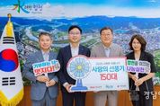 경남일간신문 | 합천군은 지난 15일 BNK경남은행 합천지점이 천군청을 방문해 이웃돕기 성품으로 450만원 상당의 선풍기 150대를 기탁했다고 밝혔다. 이번 기탁식에는 임재문 경남은행 서부영업본부장을 비롯해 유성호 경남은행 합천지점장이 참석했으며, 지역 내 소외계층에 대한 BNK경남은행의 사회공헌 사업의 일환으로 진행됐다. 임재문 서부영업본부장은 “이번 여름 폭염과 열대야가 극심하다고 하는데 냉방제품 마련이 쉽지 않은 에너지 취약계층이 조금이나마 시원한 여름을 보낼 수 있기를 바란다”며 “앞으로도 소외된 이웃들을 살피고 곳곳에 나눔을 실천할 수 있도록 노력하겠다”고 말했다. BNK경남은행 합천지점은 해마다 명절맞이 합천사랑상품권, 계절 이불과 생필품, 김장김치 등의 후원 물품을 기탁하며 이웃사랑 실천에 앞장서고 있다. 김윤철 합천군수는 “무더운 여름을 나는 것이 어려운 이웃들을 생각하는 마음으로 나눔을 실천해주셔서 감사드리며, 기탁해주신 성품은 도움이 필요한 이웃에게 잘 전달되도록 하겠다”고 감사의 마음을 전했다. 이번에 기탁받은 성품은 경남사회복지공동모금회를 통해 관내 저소득 세대에