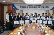 경남일간신문 | 경상남도는 7일 오후 경남대학교에서 열린 ‘글로컬대학 공동협력 선언식’에 참석해 경남대의 글로컬대학 최종 지정을 위한 협력 의지를 공식화했다. 이번 선언식은 오는 9월 교육부의 글로컬대학 본 지정을 앞두고, 예비지정 대학 18곳 중 하나로 선정된 경남대가 지역사회에 글로컬대학 실행계획을 공표하고, 산학연 협력을 통해 사업 성공 의지를 다지는 자리로 마련됐다. 이날 행사에는 경남도와 창원시, 경남대, 한국전기연구원, 신성델타테크 등 지자체‧대학‧산업체 관계자 50여 명이 참석해 공동협력을 선언했다. 행사는 △유남현 지역혁신중심 대학지원체계(RISE) 부단장의 ‘초거대 제조 인공지능(AI) 표준 모델’ 발표, △홍정효 국책사업추진위원장의 글로컬대학 추진 경과 보고, △최선욱 지역혁신중심 대학지원체계(RISE) 단장의 실행계획 보고, △경남대 총장과 17개 공동협력기관장의 공동협력 선언 선포 순으로 진행됐다. 공식 행사 이후에는 대학 내부 구성원을 위한 별도 설명회도 열렸다. 경남대는 이번 실행계획서에서 ‘제조 인공지능 전환(AX) 글로컬 허브 대학’을 비전으로 제시했다. 제조 디지털 전