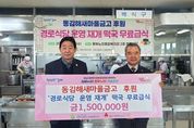 경남일간신문 | (재)김해시복지재단(대표이사 임주택) 김해시동부노인종합복지관(관장 심우영)에서는 지난 21일(수) 동김해새마을금고(이사장 이강은)는 경로식당 운영 재개 떡국 무료급식 후원 150만원 전달식을 개최했다. 이날 전달식에는 동김해새마을금고 이강은 이사장, 김해시복지재단 임주택 대표이사 및 관계자 등이 참석해 김해시동부노인종합복지관 경로식당 리모델링 공사 완료 복지관 운영 재개를 위한 떡국 무료급식 후원으로 이용 어르신들의 건강한 일상을 응원했다고 전했다. 김해시복지재단 임주택 대표이사는“경로식당 운영 재개를 맞이하여 동김해새마을금고의 무료급식 후원으로 추운 겨울날 어르신들께 따뜻한 떡국을 제공할 수 있게 되어 감사드린다.”고 말했다. 동김해새마을금고 이강은 이사장은 “지역사회 어르신들께 한끼의 식사 제공으로 행복한 일상이 되길 바라며, 앞으로도 나눔을 실천하는 사회공헌 활동을 지속하겠다.”고 전했다. 김해시동부노인종합복지관은 지역 어르신의 건강한 노후와 삶의 질 향상을 위해 다양한 복지 서비스를 제공 및 행사 기획ㆍ진행하고 있다. 궁금한 사항은으로 문의하면 된다.