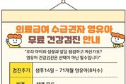 경남일간신문 | 거제시보건소는 생후 14일부터 만 6세 미만(71개월) 의료급여수급권자 영유아를 대상으로 실시하는 영유아 국가건강검진 비용을 지원한다. 영유아 건강검진은 ▶생후 14∼35일 ▶4∼6개월 ▶9∼12개월 ▶18∼24개월 ▶30∼36개월 ▶42∼48개월 ▶54∼60개월 ▶66∼71개월 등 총 8차례 진행된다. 주요 검진검진 항목에는 문진과 진찰, 신체계측, 발달평가, 건강교육 및 상담, 구강검진 등이 포함된다. 검진은 국민건강보험공단에서 지정한 전국 검진기관에서 가능하며, 공단 누리집의 '검진기관 → 병원찾기' 메뉴를 통해 가까운 검진기관을 확인할 수 있다. 보건소 관계자는 “모든 영유아가 건강하게 성장할 수 있도록 의료급여 수급권자 가정에서도 꼭 영유아 건강검진을 받으시길 당부드린다”고 밝혔다. 기타 자세한 사항은 거제시보건소 건강증진과 모자보건팀, 국민건강보험공단으로 문의하면 된다.