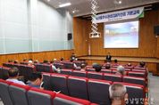 경남일간신문 | 고성군 이장협의회(지회장 배삼태)는 8월 11일, 당항포관광지 엑스포주제관에서 ‘2025년 고성군 이장협의회 3/4분기 정례회’를 개최했다. 이날 회의에는 류해석 부군수 등 군 관계자들이 참석해 군정 주요 시책을 공유하고, 배삼태 지회장을 비롯한 읍·면 이장협의회장들이 주요 안건을 논의하는 시간을 가졌다. 주요 내용으로는 10월 개최 예정인 ‘경남 이통장연합회 한마음대회’의 성공적인 개최를 통한 ‘2025 경남고성공룡세계엑스포’ 홍보 방안이 중점적으로 다뤄졌다. 또한, 엑스포 준비 현황과 주요 프로그램이 안내되며 각 읍·면 이장단의 적극적인 홍보와 주민 참여가 당부됐다. 류해석 부군수는 “이장은 군정과 군민을 연결하는 중요한 가교 역할을 맡고 있다”라며, “다가오는 한마음대회와 엑스포를 통해 고성의 매력을 널리 알리고, 최근 최종 선정된 ‘고성군 KTX역세권 개발사업 투자선도지구’ 지정으로 고성군의 미래 성장 동력에 대해 군민들의 관심과 참여가 이어지기를 기대한다”라고 말했다. 배삼태 지회장은 “우리 이장단은 항상 군과 주민을 잇는 소통의 다리가 되기 위해 노력해왔다”라
