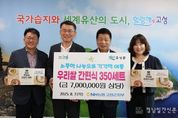 경남일간신문 | NH농협 고성군지부(지부장 김무성)는 8월 7일 고성군청을 방문해 저소득 취약계층 지원을 위해 700만 원 상당의 우리쌀 간편식(떡국, 쌀국수 등) 350세트를 고성군에 기탁했다. 이번 지원은 폭염 및 집중호우 등으로 어려움을 겪는 관내 취약계층 가정의 끼니 문제 해결과 농축산물 소비확대를 도모하고자 추진됐다. 김무성 NH농협 고성군지부장은 “지역사회 내 어려운 이웃에게 힘이 될 수 있어 매우 뜻깊다”며 “앞으로도 지역사회와 함께 상생하는 나눔 활동을 지속적으로 이어가겠다”고 밝혔다. 이상근 고성군수는 “NH농협 고성군지부의 이웃사랑 나눔 실천에 감사드린다”며 “기탁해주신 우리쌀 간편식이 실제로 도움이 필요한 가구에 소중하게 전달될 수 있도록 최선을 다하겠다”고 말했다. 이날 기탁된 물품은 경남사회복지공동모금회를 통해 지역 내 저소득 취약계층 가구에 전달할 예정이다.
