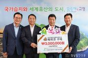 경남일간신문 | 고성군은 제8기 5급 승진리더과정 제14분임(분임장 주종배) 분임원들이 고성군 고향사랑기부제를 응원하고자 200만 원을 기탁했다고 밝혔다. 주종배 분임장은 “전국 각지에서 모인 우리 분임원들이 공룡의 고장 고성에 대한 애정을 표현하고 싶었고, 고향사랑기부제를 통해 그 마음을 실천할 수 있어 매우 기쁘다”라며, “고성군의 환대에 감사드리고, 앞으로 고성을 다시 한번 방문하길 고대한다”라고 전했다. 이상근 고성군수는 “고성에 대한 애정과 관심을 보내주신 주종배 분임장님과 제14분임 분임원 여러분께 깊은 감사의 말씀을 드린다”라며, “소중한 기부금은 군민 복지와 지역 발전을 위해 꼭 필요한 곳에 소중히 사용하겠다”라고 감사의 뜻을 밝혔다. 한편, 고향사랑기부제는 주민등록상 주소지를 제외한 개인이 다른 지방자치단체에 연간 2,000만 원 한도 내에서 기부할 수 있는 제도다. 기부자는 세액공제 혜택과 함께 기부금의 30% 상당의 81종 답례품 중 하나를 선택할 수 있으며, 고향사랑e음 시스템 또는 전국 농협을 통해 참여할 수 있다.