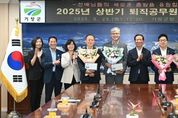 경남일간신문 | 거창군은 26일 군청 상황실에서 2025년 상반기 퇴직공무원 간담회를 개최하고, 30여 년간 공직에 몸담으며 지역사회 발전과 공공서비스 향상에 기여한 퇴직공무원들에게 공로패를 수여하고 감사와 축하의 마음을 전했다. 이번에 퇴직하는 공무원은 △행정국장 강준석 △민원소통과장 노민섭 △남상면장 김진근 △신원면장 이수용 △문화예술과 구본용 △보건소 신미영·서영진·전금숙 △안전총괄과 이승호 등 9명이다. 구인모 군수는 직접 공로패를 전달하며, “그동안 거창발전과 군민을 위해 묵묵히 헌신해 주신 여러분의 노고에 깊이 감사드린다”라며 “명예로운 퇴임을 진심으로 축하드리며 앞으로 더 발전적이고 행복한 인생 2막을 맞이하시길 바란다”라고 말했다. 퇴직공무원들은 공로패 수여와 축하에 감사함을 표하며 소감을 전했다. 한 참석자는 “오랜 기간 공직생활을 하며 보람도 많았지만, 오늘 이렇게 축하와 응원을 받으며 퇴임하게 되어 더욱 뜻깊고 감사드린다”라며 “앞으로도 지역사회 발전에 도움이 되는 일이 있다면 적극 참여하고 함께 하겠다”라고 말했다. 특히, 퇴임을 축하하기 위해 많은 후배 공무원들이 함께 모여