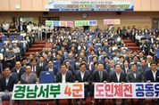 경남일간신문 | 경남 서부권 산청·함양·거창·합천 4개 군이 6월 24일 오후 2시, 거창문화원에서 ‘2027년 도민체전 공동유치와 지역경제 활성화에 관한 결의대회’를 열고 본격적인 유치전에 돌입했다. 이날 결의대회는 지난 6월 합천군수실에서 열린 4개 군 행정협의회 결의와 3월 합천에서 개최된 ‘스포츠 비즈니스 정책토론회’에서 논의된 지역 간 협력체계 구축, 스포츠 인프라 확충, 지역경제 활성화 전략을 실천에 옮기기 위한 첫걸음으로 마련됐다. 결의대회에는 신성범 국회의원을 비롯해 구인모 거창군수, 이승화 산청군수, 진병영 함양군수, 김윤철 합천군수 등 4개 군 단체장과 체육회장, 지방의회 의원, 종목별 체육단체, 지역 상공계, 주민대표 등 220여 명이 참석해 도민체전 유치를 위한 강한 의지를 모았다. 행사는 신성범 국회의원의 개회사와 4개 군 군수의 공동유치 취지 발표, 스포츠 산업의 지역경제 효과 주제 발표, 응원영상과 퍼포먼스, 기념 촬영 순으로 진행됐으며, 참석자들은 하나가 된 목소리로 “2027년 도민체전은 서부경남이 함께 하자”라는 구호를 외쳤다. 도민체전 유치는 단순한 체육행사 유치를