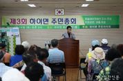 경남일간신문 | 고성군 하이면 주민자치회(회장 이은호)는 7월 26일 하이면복지회관에서 이상근 고성군수, 최을석 고성군의회 의장, 허동원 경남도의회 위원장, 백수명 경남도의회 위원장, 정영환 군의원 등 지역사회 단체장과 마을 이장 및 19개 마을 주민들과 함께 2025년 제3회 하이면주민자치회 주민총회를 개최했다. 이번 주민총회는 내빈과 주민 200여 명이 참석한 가운데 △식전문화공연(고고장구) △웃음 레크레이션 △기념사(축사) △주민자치회 현황 보고 △2026년 자치계획 발표 △문화공연(노래교실 합창, 통기타 연주, 색소폰 연주) △사전투표 및 현장투표 결과 발표순으로 진행됐다. 이은호 하이면 주민자치회장은 “무더위 속에서도 올해 세 번째를 맞이한 주민총회를 함께해 주신 모든 분께 진심으로 감사드린다”라며, “주민들의 다양한 의견을 폭넓게 수렴하여 진정한 주민자치 실현에 앞장서고, 지역사회와 항상 소통하고 공감하는 자치회가 되도록 더욱 정진하겠다”라고 말했다. 이날 총회에 참석한 이상근 군수는 “여기 계신 주민자치회 위원님들 한 분 한 분의 마음이 하이면을 더 살기 좋고 행복한 동네로 만드는 가장 큰 힘이 된