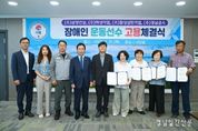 경남일간신문 | 거제시장애인체육회는 31일 거제시청 시장실에서 ‘장애인 운동선수 고용 체결식’을 개최했다. 거제시는 이날 지역 4개 업체(△(주)삼양건설, △㈜경남금속, △㈜하성기업, △㈜참성실한 기업)에서 장애인 선수 4명을 정식 채용했다고 밝혔다. 이번 채용을 통해 파크골프 종목의 오기환 선수, 탁구 종목의 유성연 선수, 론볼 종목의 정보윤 선수, 사격 종목의 최미선 선수가 채용돼, 급여를 지급받으며 안정적으로 훈련에 전념할 수 있는 기반이 마련됐다. 거제시장애인체육회에서 추진한 ‘기업체 장애인 운동선수 고용 사업’은 장애인 전문 체육선수에게 경력단절 없이 안정적으로 훈련에 매진할 수 있도록 일자리를 제공하는 한편, 기업은 장애인 고용의무 이행 및 사회적 가치 실현을 통해 기업 이미지 제고에 긍정적인 효과를 기대할 수 있는 상생형 사업이다. 거제시장애인체육회에 따르면, 2022년부터 지역 기업을 대상으로 장애인 운동선수의 고용을 지원한 결과, 이번 고용을 포함해 현재까지 도내 16개 기업에서 총 18명의 장애인 운동선수가 정식으로 채용되는 성과를 거뒀다. 김점수 ㈜삼양건설 대표는 “