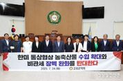 경남일간신문 | 고성군의회는 7월 24일, 제303회 임시회 제2차 본회의에서 '한미 통상협상 농축산물 수입 확대와 비관세 장벽 완화 반대 건의문'을 채택했다. 이번 건의문은 최두임 의회운영위원장이 대표발의하고, 고성군의회 의원 11명 전원이 공동발의했다. 건의문에는 최근 한미 통상협상에서 논의 중인 농축산물 수입 확대와 관련한 국민적 우려와 함께, 이에 대한 고성군의회의 단호한 반대 입장이 담겼다. 의원들은 건의문을 통해 농업 보호뿐 아니라 국민 건강과 식량안보가 최우선적으로 고려돼야 한다는 점을 분명히 했다. 특히 ▲30개월령 이상 쇠고기 수입 허용 ▲쌀 저율관세할당(TRQ) 확대 ▲유전자변형작물(LMO) 수입 규제 완화 ▲사과 등 과일류 검역 완화 등은 농업계와 국민의 불안을 가중시키는 요인으로 지적했다. 의회는 “쇠고기 수입 기준 완화와 쌀 수입 확대는 국내 농가의 어려움을 가중시킬 것”이라며, “이번 통상협상 과정에서 국민 건강과 식량 안보, 농업 기반이 흔들리지 않도록 신중히 검토해 달라”고 강조했다. 또한, 유전자변형작물과 과일류의 수입 확대는 국민 먹거리 안