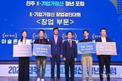 경남일간신문 | 진주 K-기업가정신재단은 10일 '진주 K-기업가정신 청년 포럼'에서 삼성ㆍLGㆍGSㆍ효성 창업주의 호(號)를 딴 ‘진주 K-기업가정신상’ 시상식을 개최했다고 밝혔다. 시상식에는 4대 기업 임원, 중소기업 CEO, 예비 창업가와 창업가, 청년 기업인, 대학생 등 450여 명이 참여해 4대 기업 창업주의 기업 가치인 진주 K-기업가정신의 의미를 되새기는 시간을 가졌다. ‘진주 K-기업가정신상’은 4대 기업 창업주들의 호(號)를 딴 호암 혁신상, 연암 개혁상, 효주 창조상, 만우 도전상이다. 여기에는 혁신과 개혁, 창조와 도전이라는 오늘날 청년들이 나아가야 할 가치와 방향성을 담았다. 이날은 창업과 예비창업 2개 부문으로 나누어 각 4개 팀 총 8개 팀을 시상했다. 창업 부문에서는 호암 혁신상에 아슬론, 연암 개척상에 비즈큐어, 효주 창조상에 리보틱스, 만우 도전상에 주식회사 꾼이 수상의 영예를 안았으며 각각 상금 1000만 원을 받았다. 창업 부문 수상은 김종욱 진주 K-기업가정신재단 회장이 호암 혁신상과 만우 도전상, 조규일 진주시장이 연암 개척상과 효주 창조상을 수여했다. &nbs