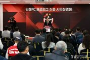 경남일간신문 | 2025년 K3리그 우승컵을 들어올린 김해FC2008(이하 김해FC)이 내년 프로리그 진출에 따른 시민설명회를 성황리에 개최했다. 28일 김해종합운동장에서 열린 설명회에는 재단법인 김해FC 이사장인 홍태용 김해시장과 축구협회 임원진과 관계자를 비롯해 김해시 체육회와 유관단체, 시민과 축구팬 200여명이 참석해 설명회장을 가득 메웠다. 현장에 참석하지 못한 시민들은 김해시 공식 유튜브 채널에서 생중계를 시청했다. 김해FC는 구단의 프로리그 진출 배경에 대해 ‘시민 스포츠 문화 요구 충족’과 ‘지역 경제 파급효과 확대’를 통한 구단 발전 선순환 고리 구축이 목적이라고 밝혔다. 중장기 목표로 2030년까지 홈 경기 평균 관중 5,000명, 2035년까지 구단 재정 자립 70% 달성 등을 내세우며 이를 실현하기 위한 구단의 5대 핵심전략인 ‘Iron Project Series’를 구체적으로 설명했다. 또 김해FC의 미래 비전인 ‘축구를 넘어서 김해의 역사와 현재 그리고 미래를 잇는 생활 속 시민구단’에 대해 ▲지자체 예산 의존에서 벗어나 자립하는 구단 ▲단순한 축구팀을 넘어