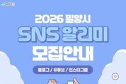 경남일간신문 | 경남 밀양시는 오는 12일 1일까지 시의 정책, 문화·관광, 축제·행사, 맛집 등 다양한 분야를 취재하고 홍보할 ‘2026년 사회관계망서비스(SNS) 알리미’를 모집한다고 24일 밝혔다. 모집 분야는 블로그 10명, 유튜브 5명, 인스타그램 5명 등 총 20명이다. 2026년에는 인스타그램 부문을 새롭게 신설해 더 다양한 플랫폼에서 밀양의 매력을 알리고자 한다. 선발된 SNS 알리미는 내년 연말까지 밀양시의 숨겨진 볼거리, 즐길 거리, 먹거리 등을 발굴해 품질 높은 콘텐츠를 제작하고, 이를 시 공식 사회관계망서비스 채널에 공유하게 된다. 활동자에게는 매월 콘텐츠 제작에 따른 소정의 원고료가 지급되며, 시가 주최하는 행사에 우선 참여하고 취재할 수 있는 기회 등 다양한 혜택도 주어진다. 지원 방법은 밀양시 대표 누리집의 고시·공고란에서 지원서를 내려받아 작성 후 이메일로 제출하면 된다. 모집 관련 자세한 사항은 밀양시 대표 누리집 또는 공식 사회관계망서비스에서 확인할 수 있다. SNS 알리미 선정 결과는 12월 12일 밀양시 대표 누리집 게재 및