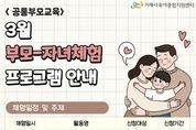 경남일간신문 | 거제시육아종합지원센터는 영유아 가정을 대상으로 하는 공통부모교육 부모-자녀체험 활동 3월 참여자를 5일부터 11일까지 모집한다고 밝혔다. 공통부모교육 부모-자녀체험은 일상에서 쉽게 구할 수 있는 재료를 활용한 영아/유아 활동 및 상호작용을 통해 부모-자녀 관계 증진에 중점을 둔 활동이다. 3월은 센터 내 활동으로 영아 활동 2강좌(습자지를 날려보아요, 스킨십 놀이해요), 유아 활동 1강좌(종이컵으로 탈 것 만들어 놀이해요)를 센터 3층 오색키움터에서 진행할 계획이다. 나정민 가족정책과장은 “육아에 어려움을 겪는 부모님들에게 육아종합지원센터 부모교육이 작은 이정표가 되기를 바라며, 다양한 체험 활동을 통해 자녀와 돈독한 관계를 만들기 바란다.”고 전했다.