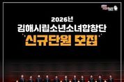 경남일간신문 | 김해시는 2026년부터 활동할 김해시립소년소녀합창단의 신입 단원을 모집한다고 19일 밝혔다. 모집 대상은 김해시에 거주하는 10세이상 19세이한 청소년으로 주 2회(화·금요일 오후 6시~9시) 진행되는 정기 연습에 성실히 참여할 수 있어야 한다. 모집 인원은 비상임 단원 10명 이내이며, 응시원서는 김해시청 누리집에서 내려받아 오는 26일부터 2월 5일 오후 5시까지 방문, 등기우편 또는 이메일로 제출하면 된다. 응시원서 제출 시 학교장과 보호자의 동의를 받아야 하며, 전형 당일 학생증과 접수증을 반드시 지참해야 한다. 제출된 서류는 반환되지 않는다. 전형은 실기와 면접으로 진행된다. 실기시험은 애국가(1~4절 중 심사위원 지정 소절)와 자유곡 1곡을 제창하며, 음감 테스트도 함께 실시한다. 실기와 면접 점수를 종합해 최종 합격자를 선발하되 실기시험 점수가 80점 이상인 지원자에 한해 합격 자격이 주어진다. 전형은 2월 6일 오후 6시 김해문화의전당 시립예술관 학습관에서 실시되며, 최종 합격자는 2월 10일 김해시청 누리집 공지 및