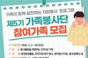 경남일간신문 | 고성군가족센터(센터장 황순옥)는 2월 1일부터 가족이 함께 실천하는 자원봉사 프로그램인 ‘제5기 가족봉사단’ 단원을 수시로 모집한다고 밝혔다. ‘제 5기 가족봉사단’은 가족 구성원이 함께 봉사활동에 참여함으로써 건강한 가족문화를 형성하고, 지역사회 나눔 활동을 통해 이웃과 마음을 이어가기 위해 기획됐다. 가족봉사단은 환경정화활동, 취약계층가정 방문 봉사활동, 고성군가족센터 프로그램 운영 지원 등 다양한 분야의 봉사활동을 매달 정기적으로 진행할 예정이다. 모집은 2026년 2월 1일부터 수시로 이루어지며, 참여 대상은 2인 이상으로 구성된 가족이면 누구나 신청 가능하다. 3월 7일 발대식을 시작으로 본격적인 활동에 들어갈 계획이며 발대식에서는 가족봉사단의 운영 취지와 연간 활동 계획을 공유하고, 참여 가족 간 소통의 시간을 마련할 예정이다. 참여를 희망하는 가족은 고성군가족센터로 방문 또는 전화 접수하면 된다. 황순옥 센터장은 “가족봉사단은 봉사를 매개로 가족이 함께 성장하고, 지역사회와 따뜻하게 연결되는 의미 있는 활동”이라며, “가족이 함께하는 나눔 활동에 관심 있는 군민들의 적극
