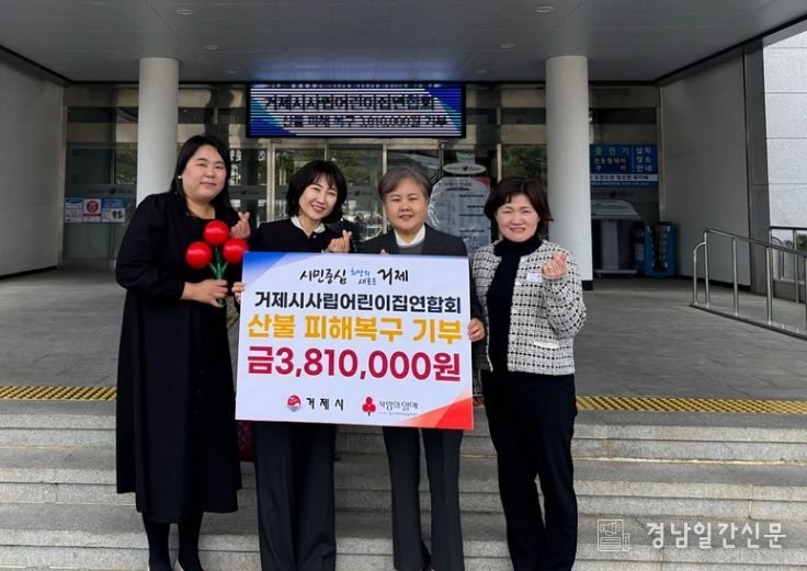경남일간신문 | 거제시는 지난 3일 거제시사립어린이집연합회(회장 전현옥)가 산불 피해 복구를 위해 성금 381만 원을 기탁했다고 밝혔다.