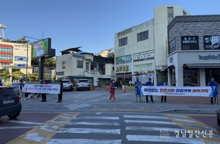 참여자들은 “건조한 가을철 산불 조심! 생활 속 화재 예방으로 소중한 생명을 지켜요!”라는 문구 현수막을 이용해 지역 주민들을 대상으로 산불 예방 캠페인 활동을 펼쳤다. 아울러 마약 퇴치를 위한 팸플릿과 물티슈 등 홍보물을 나누며 안전한 사회 만들기에 앞장섰다.