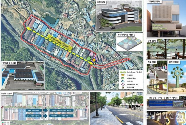 시는 주촌면 덕암산단의 고질적인 문제인 주차난, 보행안전 위험, 휴식공간과 편의시설 부족 등을 동시에 해결하기 위해 2035년까지 총 163억2,000만원(국비 81.6억, 지방비 81.6억)을 투입해 주차타워 건립, 가로정비 보행환경 개선, 수변쉼터 조성 등 다양한 기반시설을 대폭 정비하고 부족한 지원시설, 근린생활시설을 확충해 쾌적한 산업단지 환경을 조성한다.