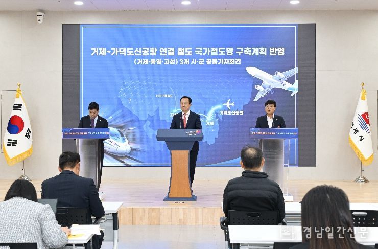 경남일간신문 | 거제시는 17일 오후 2시 거제시청 대회의실에서 통영시․고성군과 함께 ‘거제~가덕도신공항 연결철도’의 제5차 국가철도망 구축계획 반영을 촉구하는 공동 기자회견을 개최했다.