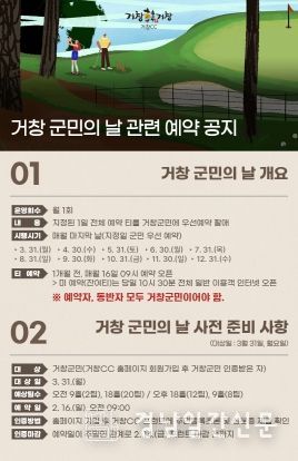 경남일간신문 | 거창군 직영 골프장인 거창CC가 본격 운영됨에 따라 군민들의 이용률을 높이기 위해 3월부터 ‘거창 군민의 날’을 매월 하루 지정하여 지역 주민들에게 우선 예약 혜택을 제공한다고 밝혔다.