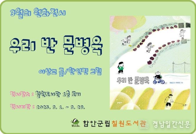 경남일간신문 | 함안군립 칠원도서관은 3월 한 달간 이상교 작가의 그림책 ‘우리 반 문병욱’의 원화를 전시한다.