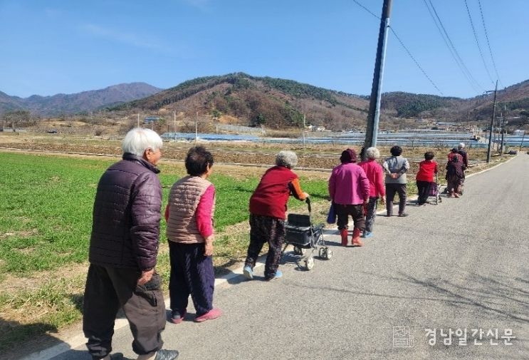 ‘걷기동무’ 사업은 면 지역 마을 어르신들이 걷기 동아리를 결성한 뒤, 만보기 등을 활용해 시기별 연 3회 챌린지(60일간 24만 보, 하루 4천 보)에 참여하는 방식으로 진행된다.