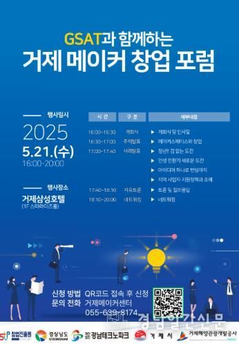경남일간신문 | 거제시는 창업을 준비하는 시민들과 메이커 활동에 관심 있는 지역 주민들을 위한 ‘거제시 메이커 창업 포럼’을 5월 21일 16시에 삼성호텔 스타라이즈홀에서 개최한다고 밝혔다.