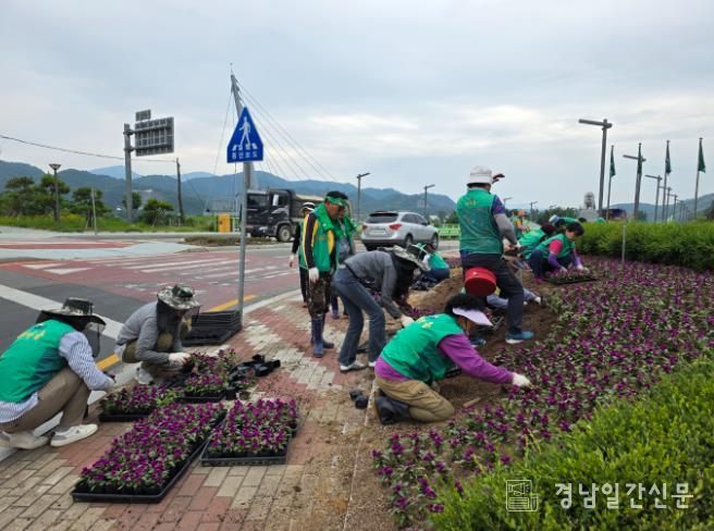 경남일간신문 | 새마을운동합천군지회는 13일 읍·면 협의회장 및 부녀회장, 문고 임원 등 40여 명이 참석한 가운데 합천읍에 위치한 남정교 회전교차로 주변에 여름 꽃을 식재했다.
