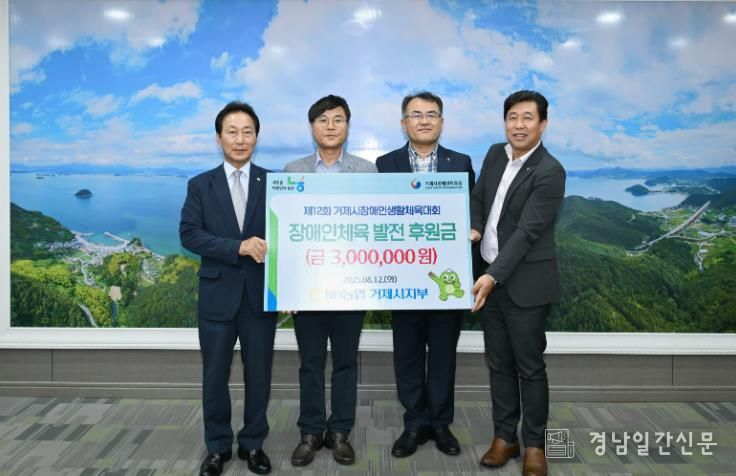 김점수 거제시장애인체육회 상임부회장은 “기부금은 거제시 장애인 생활체육 대회 운영과 선수단 육성 후원에 잘 사용하겠다”며, “후원해 주신 NH농협 거제시지부 관계자분들께 진심으로 감사의 말씀을 드린다”라고 전했다.