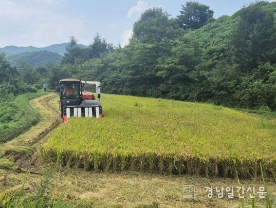 경남일간신문 | 산청군은 지난 28일 차황면 상중마을 백금택 농가에서 올해 첫 벼 베기를 실시했다고 29일 밝혔다.