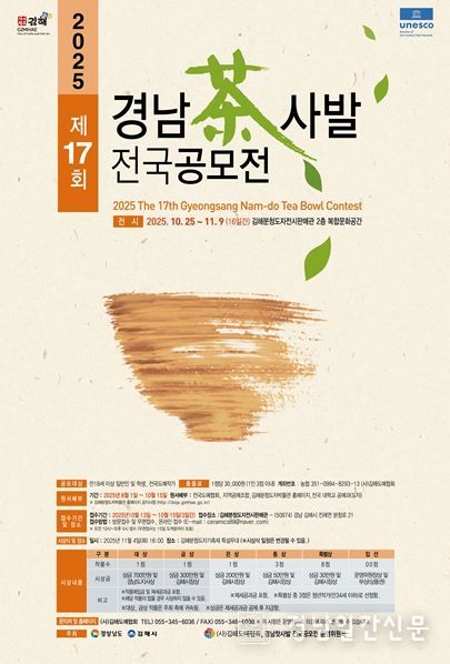 경남일간신문 | 김해시는 경남도와 공동 주최하고 (사)김해도예협회(이사장 배창진)가 주관하는 ‘제17회 경남 찻사발 전국 공모전’을 개최한다고 1일 밝혔다.