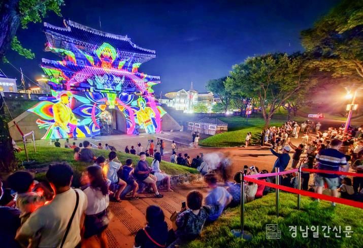 또한 한여름의 열대야에도 불구하고 화려하게 빛난 24일간의 국가유산 미디어아트는 가족단위 관람객들의 눈을 사로잡았으며, 진주성 공북문, 촉석문 내벽과 외벽을 활용한 ‘초고화질 프로젝션 맵핑’으로 구현해 관람객에게 뛰어난 몰입감을 선사했다.