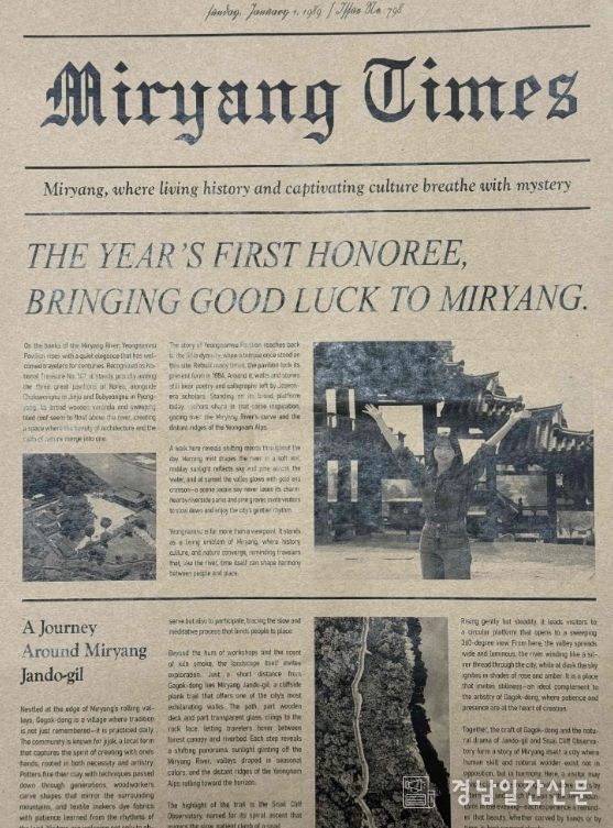 이경숙 관광진흥과장은 “신문 속 주인공이 되는 특별한 경험을 통해 관광객이 밀양의 매력을 새롭게 느끼고, 다시 방문하고 싶은 도시로 기억되길 바란다”라고 말했다.